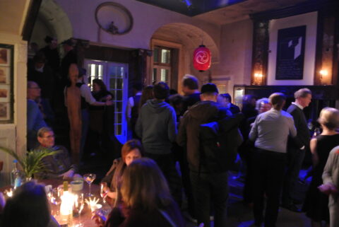 Stilecht herausgeputzte Damen und Herren – manche trösteten sich hier vielleicht fabelhaft feiernd über die abgesagte Kurhaus-Silvester-Party hinweg – , aber auch lässiges Szenevolk, Junge wie Alte feierten in sehr besonderer Atmosphäre und Stimmung gemeinsam. Eine besonders temperamentvolle und ausdauernde Dame entpuppte sich zu später, also zu früher Stunde, unglaublicherweise als: 81!