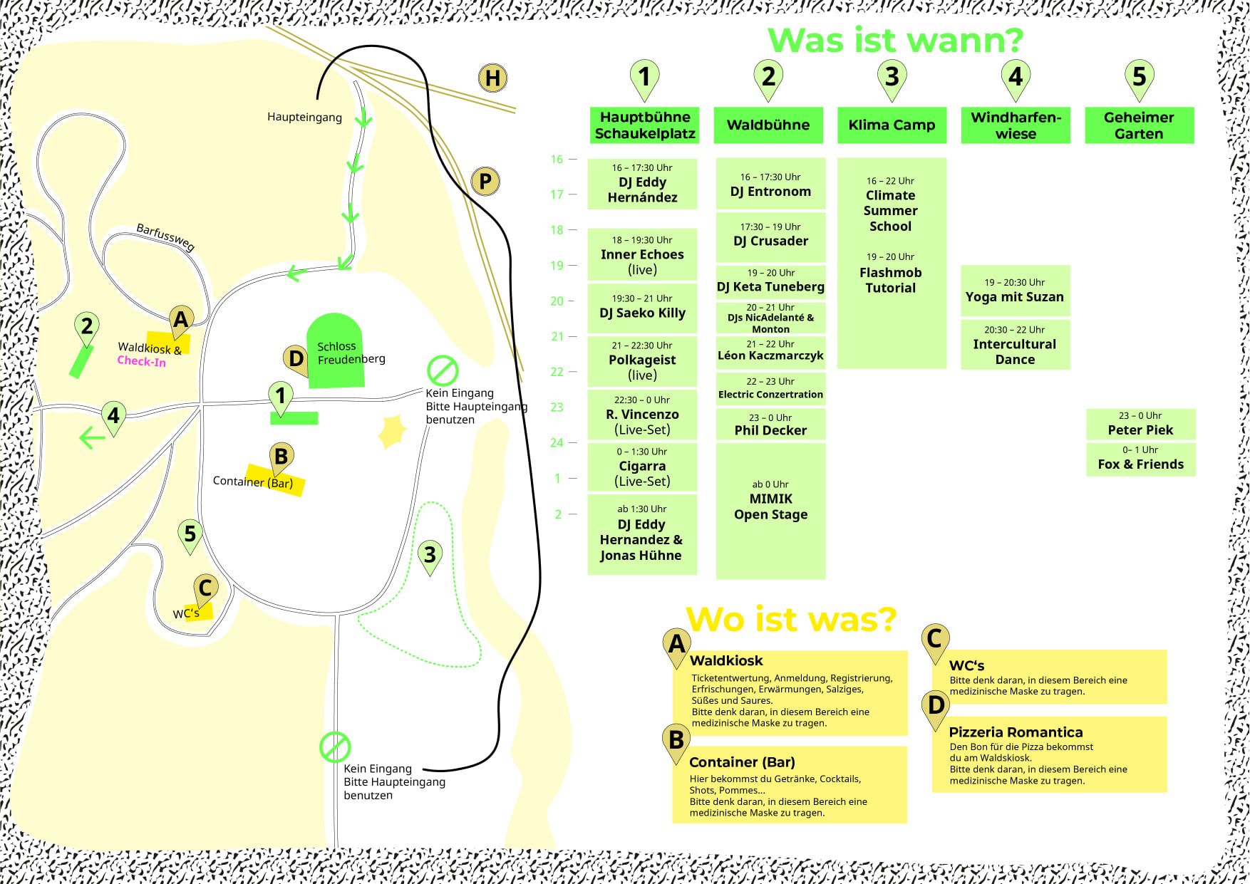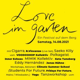 Außerdem: Workshops, Gespräche, Aktionen: Climate Summer School (Students For Future, Mainz & Fridays For Future, Wiesbaden), Yoga mit Suzan und African Danceworkshop und vieles vieles mehr.