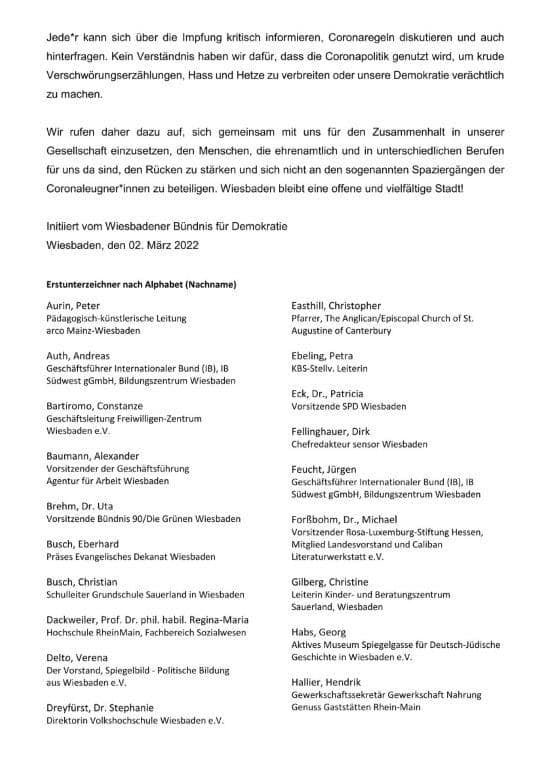 Die Wiesbadener Erklärung im Wortlaut und die Erstunterzeichner:innen: