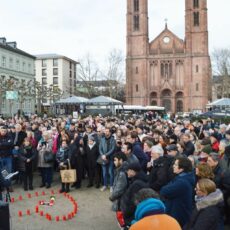Wiesbaden, Luisenplatz, 21. Februar 2020: „Wie schön, dass wir nicht alle gleich sind. Es gibt keinen Grund zu hassen.“ (Dekan Martin Mencke) „Unsere Liebe ist stärker als ihr Hass.“ (Imam Fahrudin Dzinic) „Genug ist genug.“ (Jacob Gutmark, Vorstand Jüdische Gemeinde) „Es sind längst nicht mehr Anfänge, derer wir uns wehren müssen. Wir brauchen zivilgesellschaftlichen Widerspruch.“ (Oberbürgermeister Gert-Uwe Mende)