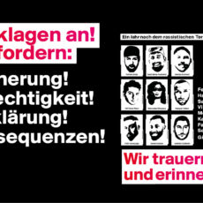 Am späten Abend des 19. Februar 2020 wurden Fatih Saraçoğlu, Gökhan Gültekin, Ferhat Unvar, Hamza Kurtović, Kaloyan Velkov, Mercedes Kierpacz, Said Nesar Hashemi, Sedat Gürbüz und Vili-Viorel Păun in Hanau Opfer eines rechtsextremistisch und rassistisch motivierten Mörders, der anschließend auch seine eigene Mutter und sich selbst erschoss. Die Tat war der vorläufige Höhepunkt einer Serie […]