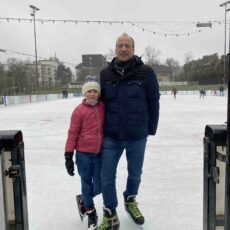 sensor-Straßengespräch: Ralf Harms (48), Lektor, & Tochter Svea (9) auf der Henkell-Kunsteisbahn