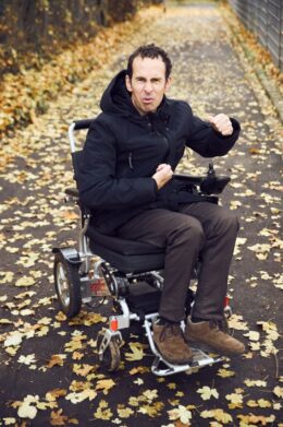 Der rollende Leierkasten ist, gerade in Zeiten der Pandemie, Michalis Möglichkeit gewesen, trotz seiner MS- Erkrankung weiterhin aus den Auftritten als DJ seinen Lebensmut zu schöpfen. Die Idee dazu hatte Kollege Janeck – enstanden ist ein Sound System, bunt dekoriert und mit einer Rampe für DJ-Equipment und Box und Akku unterm Sitz. verwandelt sich Michalis Rollstuhl in eine autonome Wanderbühne, mit der sich das Duo auf barrierefreie, bewegte Touren begibt.