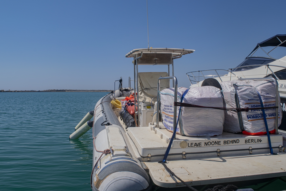 „Unsere gelbe Schönheit benötigt einen neuen Kran, um das Schnellboot schneller und einfacher ins Wasser setzen zu können! Als MARE*GO hat sie 2023 schon über 1000 Menschen auf ihrem Weg über die tödlichste Grenze der Welt begleitet. Wir versorgen mit Rettungswesten, Wasser und Erste Hilfe. Der neue Kran wird das Aussetzen des Beiboots einfacher und schneller machen.“