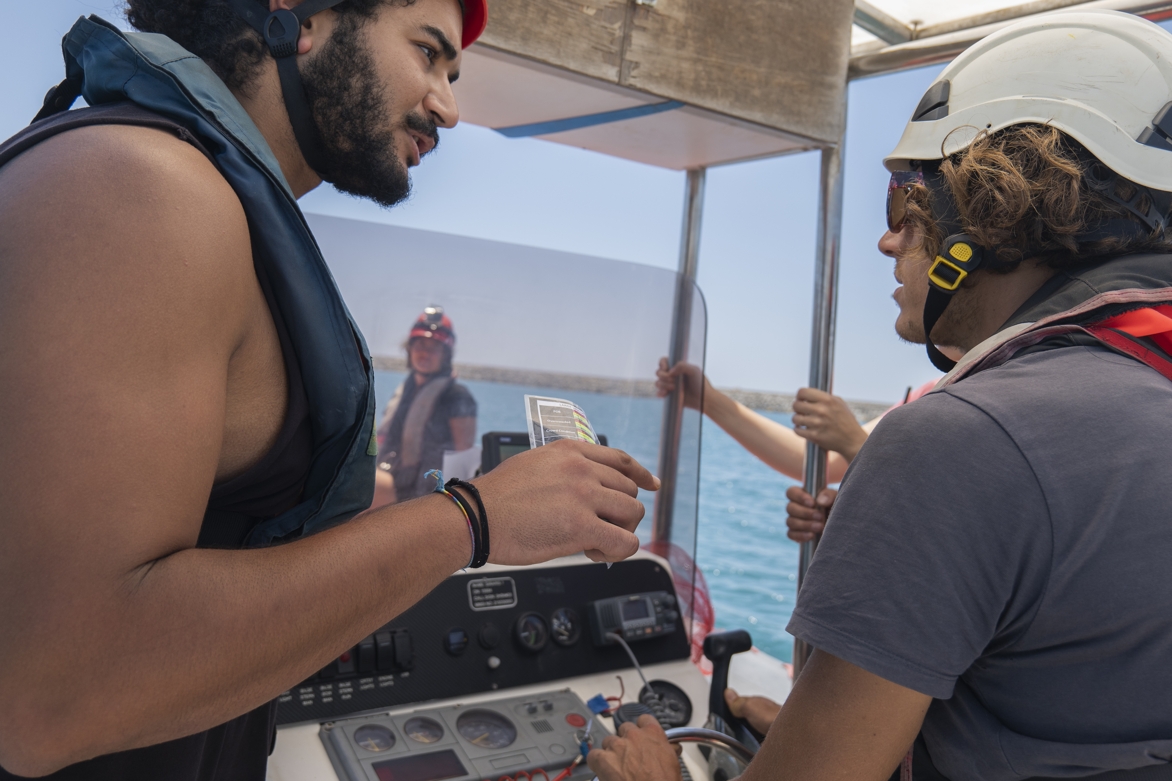 „Die ‚Mare‘ ist langsam, alt und klein“, sagt Raphael. Deshalb übernähmen ihre beiden Schnellboote die eigentliche Rettung. Die im Gemeinschaftsraum provisorisch platzierten Ventilatoren laufen auf Hochtouren. An der Steuerbord-Wand hängt eine krakelige To-Do-Liste: Kaffee kaufen, Drucker reparieren, nach der Werftzeit sauber machen. Warum Raphael auf privater Mission Menschen im Mittelmeer rettet? „Wenn keiner nein sagt, fällt es schwer, sich zu bremsen.“ Der gelernte Schiffsmechaniker wirkt entschlossen: „Jetzt ist es halt so, dass wir da in eine Lücke springen, weil staatliche Akteure nicht arbeiten.“