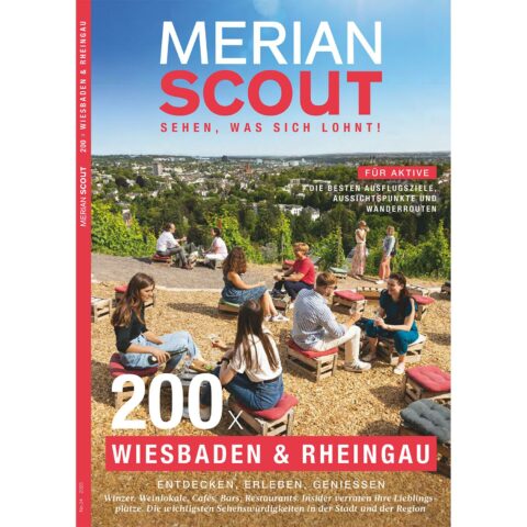 Und schicke den ersten drei Einsender:innen, die sich (mit Postanschrift) melden, ein fast druckfrisches Exemplar des neu erschienenen MERIAN scout Wiesbaden & Rheingau nach Hause.