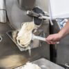 Nach dem Reifeprozess lässt Santini das Vanilleeis durch einem Sieb laufen, um die Vanilleschoten-Stückchen zu entfernen. Anschließend geht es für die Creme auf dem schnellsten Wege in den Eisfroster. Aus dieser Menge werden später umgerechnet rund 400 der heißbegehrten Eiskugeln. Natürlich stellt Santini auch viele vegane Varianten her.