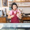 „Was möchten Sie probieren?“, fragt mich Tai. Ich entscheide mich zunächst für gerösteten Sesam, weil ich die gräuliche Farbe so ungewöhnlich finde. Es schmeckt einfach köstlich. Sie reicht mir einen weiteren Löffel mit Orangensorbet. Dann noch einen namens „Kao Niew Ma Muang“. Das ist Kokoseis mit Mangosoße und gedämpften Klebereis. Und zum Abschluss: Schokoeis. Eine gewöhnliche Sorte, außergewöhnlich gut zubereitet. Was für ein genüsslicher Schulterblick an diesem vernieselten Tag.