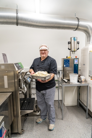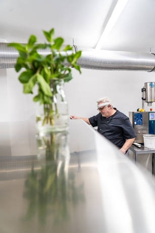 „Ich mache bereits seit 36 Jahren Eis“, erläutert der Herr der faszinierenden Eisküche: „Ursprünglich habe ich mal Koch gelernt und die Hotelfachschule in Venedig besucht. Während der Ausbildung habe ich gemerkt, wie viel Spaß es mir bereitet, Eis herzustellen.“ Auf die Qualität der überwiegend biologischen Zutaten für die vielen leckeren Eissorten legt Santini größten Wert: „Ich bereite alles selbst zu. Von den kandierten Orangenschalen über die gebrannten Mandeln und gerösteten Pistazien bis hin zur Erdbeer- und Mangosoße. Bei mir kommt keine Paste ins Eis!“, betont er.