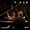 Und was für ein Ort das ist! Und was für Musik hier gemacht wird! Und wie fantastisch sie in ihrer neuen Heimat klingt! Der Engländer Alexander Hawkins war zum Eröffnungsabend mit seinem Trio gekommen und feuerte erst einmal eine ungeheure perkussive Energie in den vollbesetzten Konzertraum, als wolle er dessen Akustik testen (und den neuen Steinway gleich mit), während Steven Davis am Schlagzeug diese Energie aufnahm und in unendliche Einzelteile aufbrach und aus den Fasern neue musikalische Gedanken spann.