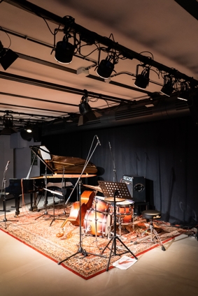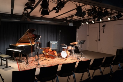 Jetzt ist da also wirklich ein Raum. Ein fester Ort, eine Spielstätte, eine Heimat. Ein Steinway-Flügel steht links auf einem Teppich, in der Mitte ein Bass, rechts ein Schlagzeug. Hier kann jetzt wirklich Musik gemacht werden. Das Warten hat ein Ende. Die Renovierungsarbeiten in und an der Walkmühle hatten sich zuletzt endlos in die Länge gezogen.