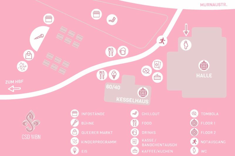 Dort steigt gegen 16 Uhr das große CSD-Sommerfest mit DJs, Drags, Musik und mehr auf zwei Bühnen. Ab 22 Uhr geht es dann in den Schlachthof: „Tanzt die ganze Nacht durch auf drei Floors, die für jeden Musikgeschmack etwas zu bieten haben.“