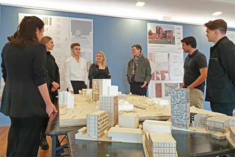 Im Sinne von Design for Democracy. Amospheres for a better life wurden in der Bewerbung zwölf Handlungsfelder definiert, die in der Gestaltung des gesellschaftlichen Miteinanders am drängendsten sind. Sie bestimmen und strukturieren die Basisarbeit als Plattformgeber zur Entwicklung des Programms für das World Design Capital 2026: Arbeiten, Bauen, Bildung, Energie, Gesundheit, Industrie, Konsum, Kultur, Mobilität, öffentlicher Raum, Sport und Wohnen. Für die Handlungsfelder wurden aus der gesamten Frankfurt RheinMain Region über 100 Projekte eingereicht, die nun einen beeindruckenden Wert für die Stadt und ihr Umland darstellen. Zu den vorgestellten Großprojekten gehörte auch die Vision eines Kulturcampus Wiesbaden mit Entwürfen von Studierenden der Hochschule RheinMain oder der Life Science Hub – biomindz Mainz. (dif/Foto Hochschule RheinMain)
