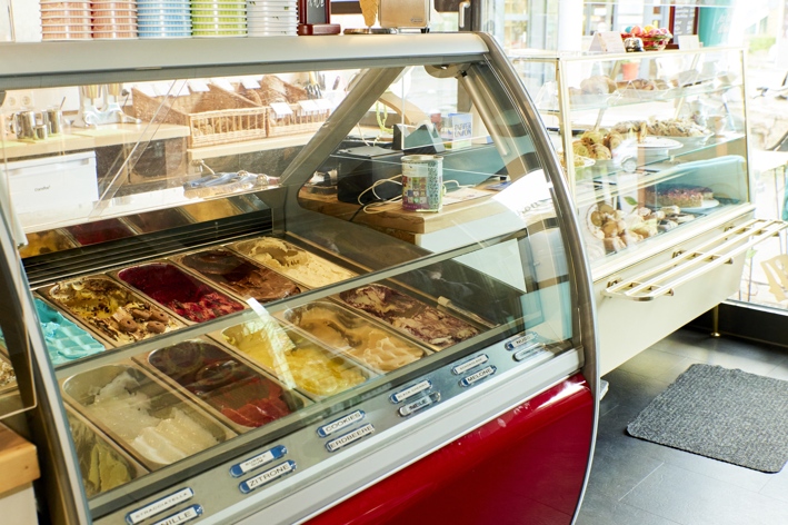 Sonderwünsche erfüllt die „Backditorei“ immer sehr gerne. Und auch bei den Eiskreationen mischt der Chef selbst mit: „Ich habe für mein erstes Enkelkind eine Sorte kreiert“, sagt er stolz. „Nele“ heißt das Kind, und die Eissorte auch: Nektarine-Lemon-Geschmack, himmlisch! Das Eis hat weniger Zucker, die Fruchteissorten sind meist Sorbets. Die Kühltheke wurde genau angepasst, mit unterschiedlichen Kältezonen, damit auch an jedem Tag, egal welche Temperatur außen herrscht, das Eis schmeckt.