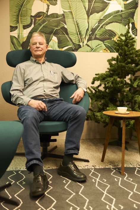 Manchmal sei der dann sogar besser als der in der Firma, meint der Fachmann. Und er hat recht: Wenn man zum Beispiel auf einem der Bürostühle aus dem Hause Haider Platz nimmt, möchte man gar nicht mehr aufstehen. Die Stühle mit eingebautem „Bioswing-Pendel“ sorgen, einfach erklärt, für kleine Ausgleichsbewegungen beim Sitzen. „Der Stuhl reagiert ganz subtil auf Ihren Herzschlag, Ihre Atmung“, beschreibt Tilmann Riemenschneider das Prinzip. Es gibt sogar Stühle mit besonderen Lamellen in der Lehne, die die Wirbel sanft massieren – das tut echt gut. Wer bereits Rückenprobleme hat, profitiert davon – und wer noch keine hat, kann vorbeugen, meint Riemenschneider.
