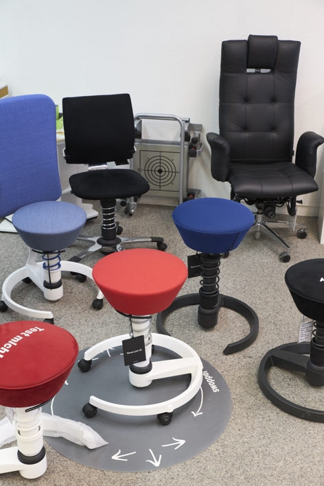 Als Nicht-Mediziner darf er natürlich keine medizinischen Ratschläge erteilen, „aber ich habe viele Kunden, die mir berichten, wie sich ihre Beschwerden verbessern.“ Bei Riemenschneider gibt es aber nicht nur diese High-End-Stühle, sondern auch viele andere Modelle, die der Gesundheit guttun: Die „Swopper“-Hocker zum Beispiel, die für aktives Sitzen durch Wippbewegungen sorgen. Oder die Kniestühle, die vor einigen Jahren mal groß in Mode waren. Und auch für die ganz Kleinen gibt es schon ergonomische Stühle und Schreibtische zum Hausaufgabenmachen. Ebenso finden Senioren hier tolle Sessel mit allerlei sinnvollen Funktionen. „Leider gibt es so etwas nicht auf Rezept, im Gegensatz zu den Niederlanden zum Beispiel“, bedauert Riemenschneider.