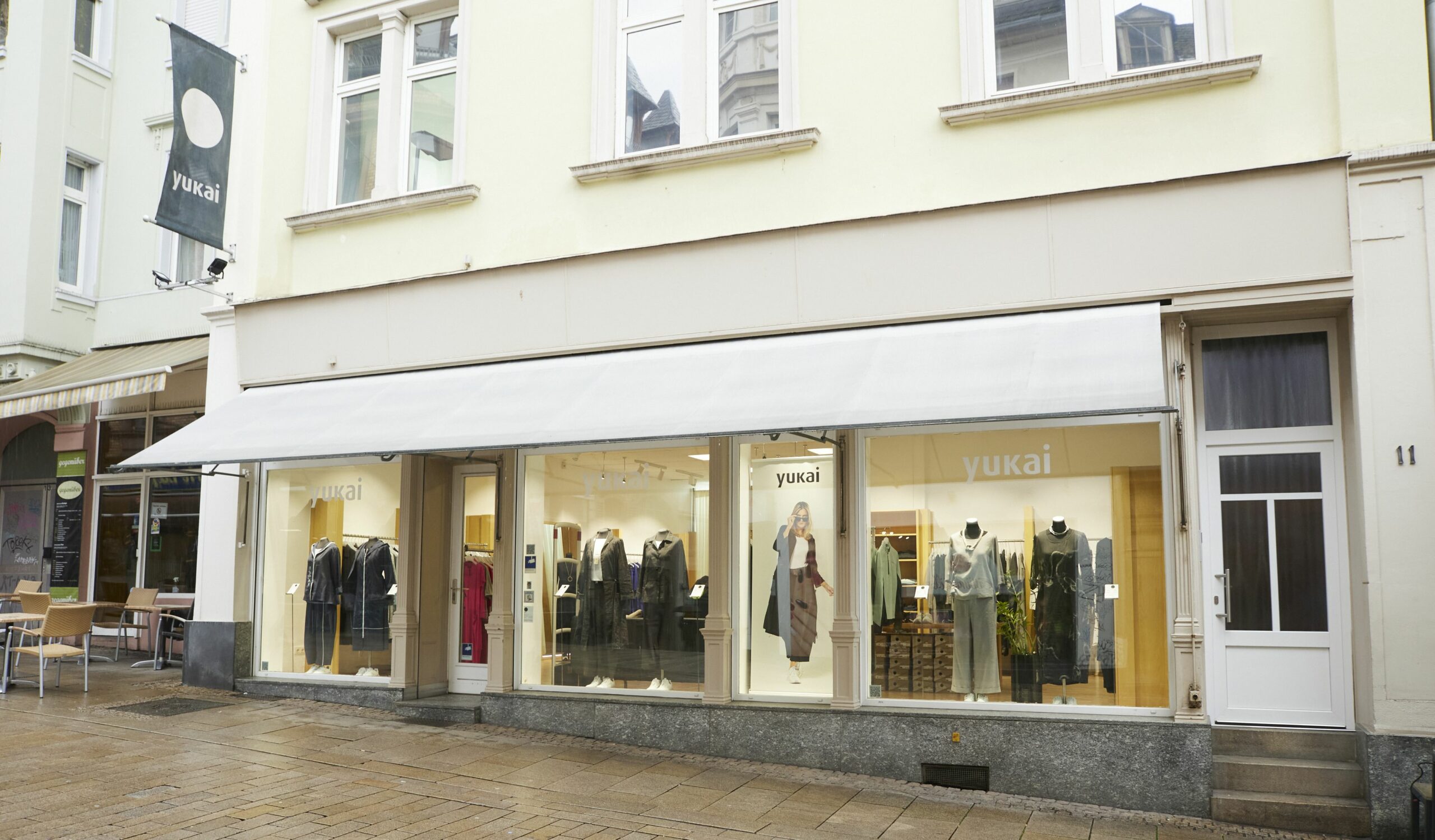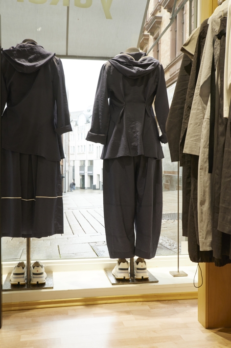 Außer dem eigenen Laden in Wiesbaden führen noch weitere exklusive, aber eher kleine Bekleidungsgeschäfte in ganz Europa die Yukai-Kollektion. Das sind Hosen, Röcke, Kleider, Jacken, Mäntel, verschiedenste Oberteile – zum Großteil in Schwarz, ab und zu mit starkfarbigen Akzenten, aktuell in strahlendem Blau und Grün. Alles wird in Wiesbaden im Atelier über dem Laden entworfen, die Musterkollektionen werden auch dort genäht. Produziert wird ausschließlich in der EU, in Deutschland, Slowenien und Portugal – unter besten Produktionsbedingungen. Die Stoffe kommen aus Italien und Japan.
