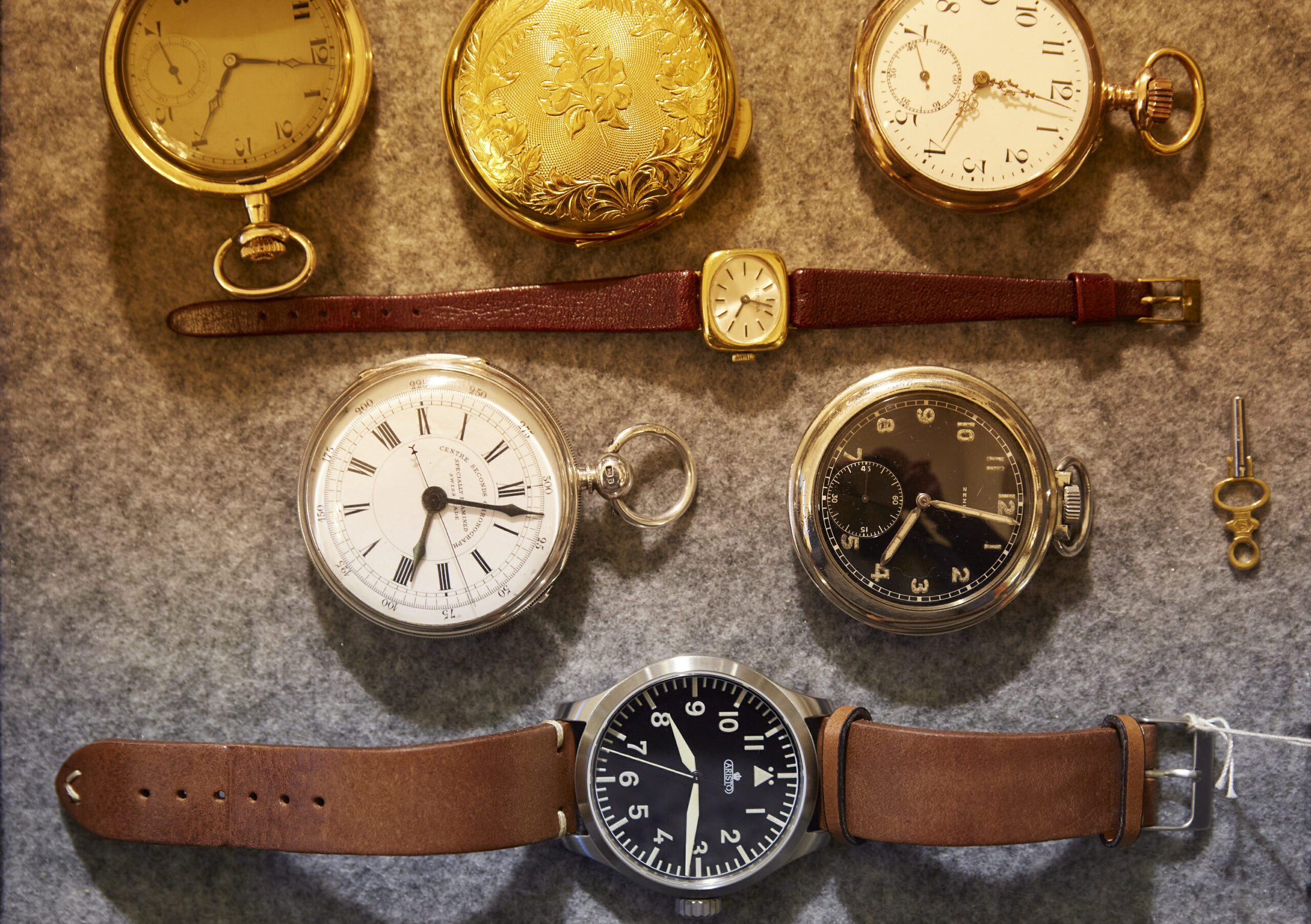 Ein Treppchen führt in die Werkstatt, in der Guske vormittags sitzt und die winzigen Schräubchen und anderen Bauteile verarbeitet. Er ist einer der wenigen in Wiesbaden und Umgebung, die sich mit Reparaturen auskennen. Viele schicken ihre Kunden zu ihm: Bei den meisten Läden, die Uhren verkaufen, ist gar kein Uhrmacher mehr am Werk. Oder man schickt die Uhr gleich zum Hersteller ein. Das macht auch Norbert Guske ab und zu. Das meiste aber kann er vor Ort reparieren.