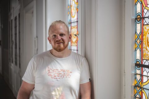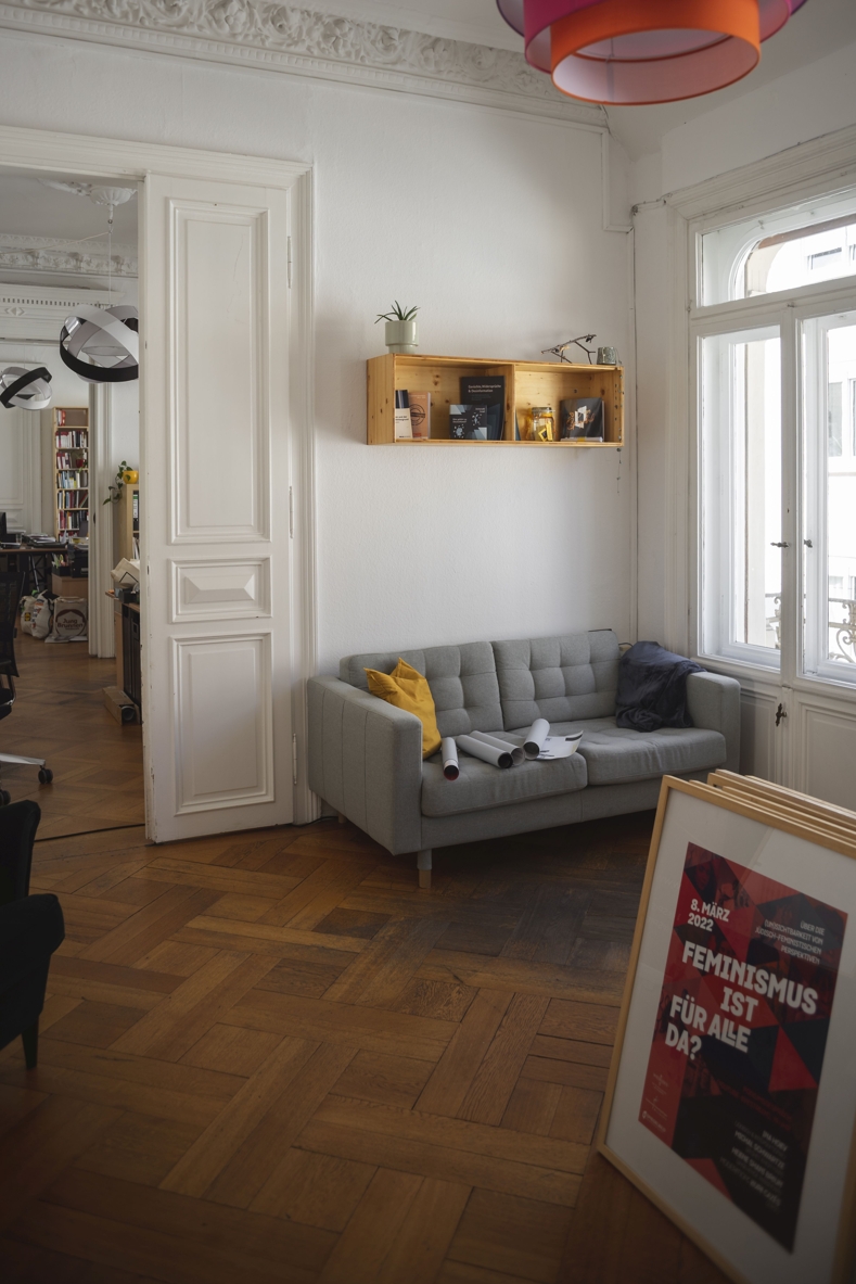 Ein neues Zuhause hat „Spiegelbild“ in der Bärenstraße gefunden. In der neuen Geschäftsstelle bin ich mit den Bildungsreferenten Paola Widmaier (30) und Benny Momper (32) verabredet. In einer hellen und sehr freundlichen Atmosphäre werden hier Inhalte erarbeitet, nach Lösungen gesucht, Schulungen durchgeführt und Multiplikatoren ausgebildet. Das Ambiente ist besonders schön und einladend, der 200-Quadratmeter-Altbau ist hell gestrichen, manche Fenster mit wunderschöner Originalglasmalerei besetzt. Die Holzgarderobe im Flur, die wie ein Original aus der Hausbauzeit wirkt, entpuppt sich als das extrem gelungene Werk einer Bildungsreferentin, die im „früheren Leben Schreinerin“ war, wie sie lachend erklärt.