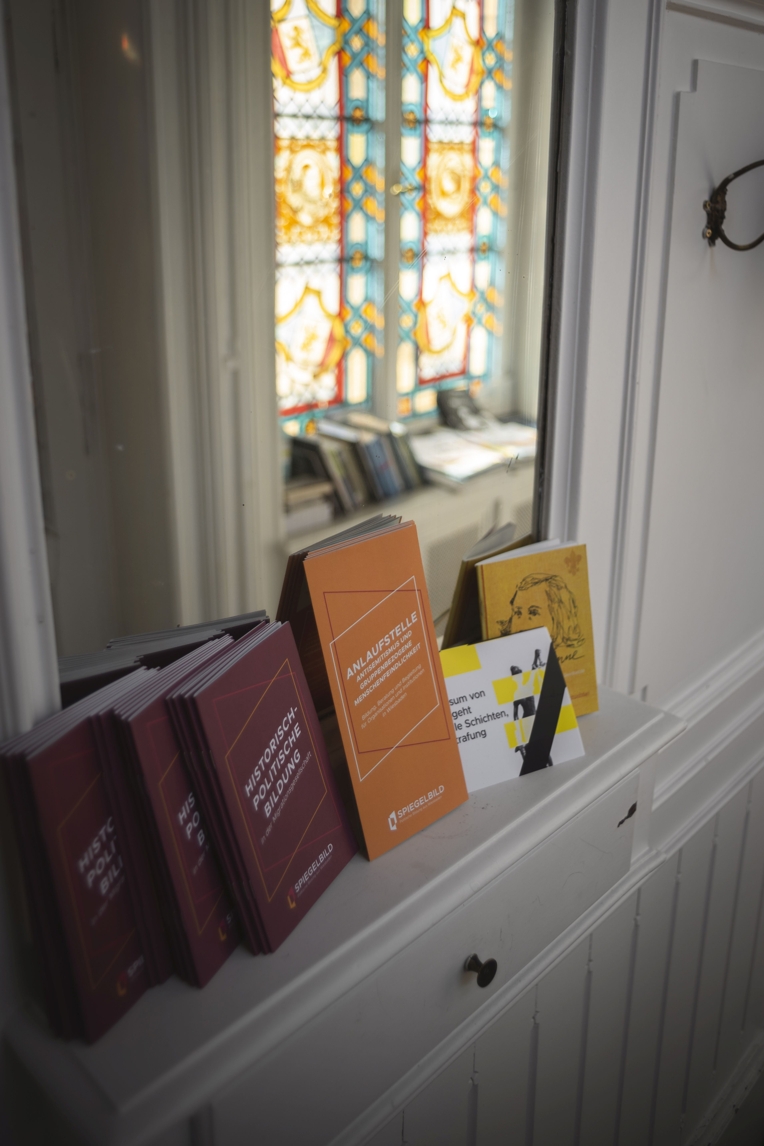 „Spiegelbild“ versteht sich als Betreiber historisch-politischer Bildung in der Migrationsgesellschaft und erreicht mit seinen diversen Angeboten – Workshops, Schulungen, Veranstaltungen – jährlich etwa 1000 Jugendliche und 500 Erwachsene. Die Aufgaben der Einrichtung, die in der Bärenstraße ein großzügiges Domizil gefunden hat, wachsen stetig.