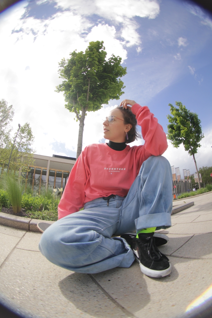 Entstanden ist „Daughters of Skateboarding“ durch Alines Bachelorarbeit. Kaputten Skateboards haucht sie neues Leben ein. Aus den Skateboards werden Unikate: Ohrringe, Nagelfeilen aus dem Griptape und Ringe aus den Kugellagern. Sie verkauft ihren Schmuck zurzeit über, ihre Internetseite, über Instagram und in der Skatehalle in der Murnaustraße. Für die Zukunft wünscht sich Aline, dass sie von dem Verkauf leben kann.