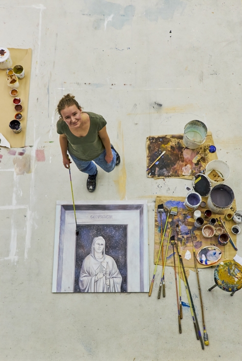Ursprünglich wollte Hannah studieren, sie habe Abi gemacht und das wäre der vorgezeichnete Weg, sagt sie. Doch nach einem sechsmonatigen Praktikum hat sie gemerkt: „Selbst, wenn ich danach noch studieren wollen würde, wäre die Möglichkeit noch da“. Den meisten Spaß hat sie beim Beobachten des Prozesses, eine komplett weiße Fläche vor sich zu haben und diese wachsen zu sehen. „Meine Ausbildung ist für mich Handwerk, aber auch Freude, es ist Ergebnisse sehen. Es ist Bewegung, es kann anstrengend sein, aber es gibt einem etwas zurück“, so die Auszubildende.