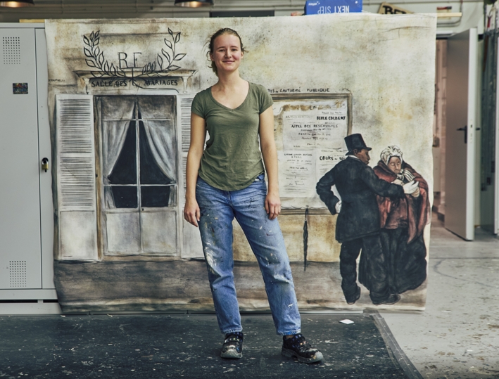 Im Malersaal des Hessischen Staatstheater hat Hannah ihre Bestimmung gefunden. Die 23-jährige wollte ein Teil des Theaters sein, hinter die Kulissen gucken und mitwirken. Einen Computerjob hätte sie sich nie vorstellen können: „Den ganzen Tag auf den Beinen zu sein, kann natürlich anstrengend sein, aber man hat auch das Gefühl etwas geschafft zu haben.“ Was sie begeistert: Man hat nicht kleine Dateien auf dem Computer, sondern am Ende des Tages hat man ein fertiges Bild oder sieht wie viele Wände man gestrichen hat.“