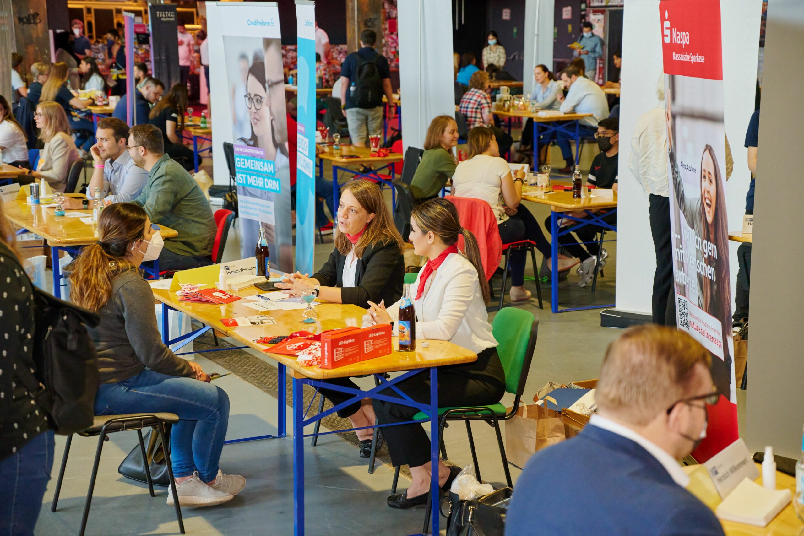 Fast 50 namhafte Unternehmen aus Wiesbaden sind dabei. Bei Personaler:innen und Ausbildern steigt schon jetzt die Vorfreude. Denn die kurzen Dates mit interessierten Schüler:innen können die Azubis von morgen bringen. Für die Jugendlichen sind die Treffen einfach und zwanglos. Sie können in den kurzen Meetings offen ihre Fragen zur Ausbildung oder Dualem Studium stellen und sich selbst vorstellen. Wenn alles passt, winkt vielleicht bald schon der Ausbildungsvertrag.