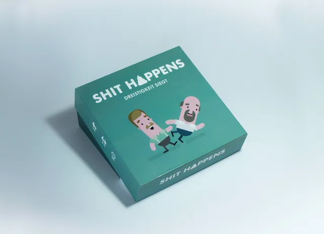In Patrick Becks taktischem Kartenspiel „Shit happens“ haben die Spieler:innen entweder Glück oder Pech. Gegenseitig werden sich Fallen gestellt um den Gegner:innen voraus zu sein, am Ende entscheidet die Stragie. Dargestellt durch die Brüder Larry und Gerry – ein echter Pechvogel und ein wahrer Glückspilz, startet das Spiel um den Sieg.