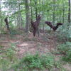 Im Gegensatz dazu steht Klaus Seibolds „Fern-Seher“, ein Rahmen auf Stelzen im Bildschirmformat, der einen Ausschnitt einer Lichtung ins Bild rückt. Usch Quednaus leuchtend blaue „Waldkönigin“ schaut als gekrönte Vogelfigur aus einem geborstenen Baum hervor und soll, so ihre Schöpferin, den Wald beschützen und Hoffnung symbolisieren. Doris Bardong stellt Figuren aus Ästen geformt auf Stelen und regt die Phantasie des Betrachters an: Sind es Buchstaben oder Tierfiguren?
