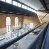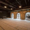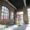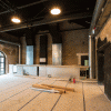 Musste man bislang vom Eingang der neuen Halle um den halben Schlachthof herum gehen, um zur Räucherkammer zu gelangen, liegen sich die Pforten zu den Veranstaltungsräumen in Zukunft gegenüber. „Dadurch wird sich eine schöne Plaza bilden“, freut sich der zweite Vorsitzende des Schlachthofs, Carsten Schack. Während sich also das Kesselhaus in der Hälfte des Wasserturms befindet, die der neuen Halle zugewandt ist, zieht das 60/40 samt Biergarten auf die den Bahngleisen zugewandte Seite. Schöne Aussichten für Drinks mit Sonnenuntergang. Die frisch sanierten Backsteinmauern sind mit einer Fensterfront versehen worden, die mit dem Charakter des mehr als einhundert Jahre alten Industriebaus architektonisch bestens harmoniert. Ein Gestaltungsmerkmal, das sich auch im Inneren fortsetzt.