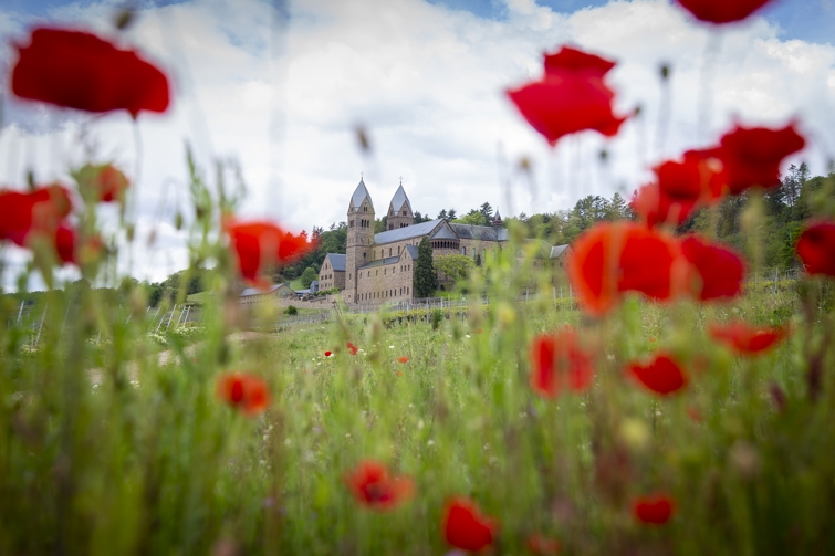 Sie sei früher gerne gereist, aber eine spirituelle Suche hat sie endgültig nach Eibingen gebracht, „weil ich immer dachte, dass da noch mehr sein muss.“ Während sie redet, leuchten ihre blauen Augen. Sie betont, dass das Leben in der Abtei keineswegs abgehoben sei, sondern in der benediktinischen Tradition zu verorten. Ein kleiner Traktor fährt vorbei und übertönt ihre schöne ruhige Stimme. Der Fahrer winkt uns freundlich zu und wird zurückgegrüßt. „Es ist bei uns immer so, es wird hier viel gearbeitet“, erklärt sie mit einem entschuldigenden Lächeln für die Störung.