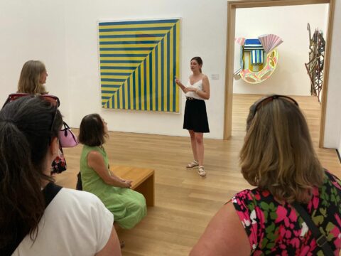 Wie spannend, erkenntnis- und einblickreich es ist, sich die Frank Stella-Ausstellung nicht nur „einfach so“ anzuschauen, sondern auch von jenen erklären zu lassen, die tief drin sind in der Materie, davon durfte sich neulich schon das sensor-Team bei einer Führung mit Kuratorin Valerie Ucke überzeugen. Und jetzt seid ihr dran! Am Donnerstag, 15. September, um 17 Uhr veranstalten wir als Medienpartner der Ausstellung in Kooperation mit dem Museum Wiesbaden eine exklusive Kuratorinnenführung für unsere Leser:innen. 20 Plätze sind zu haben.
