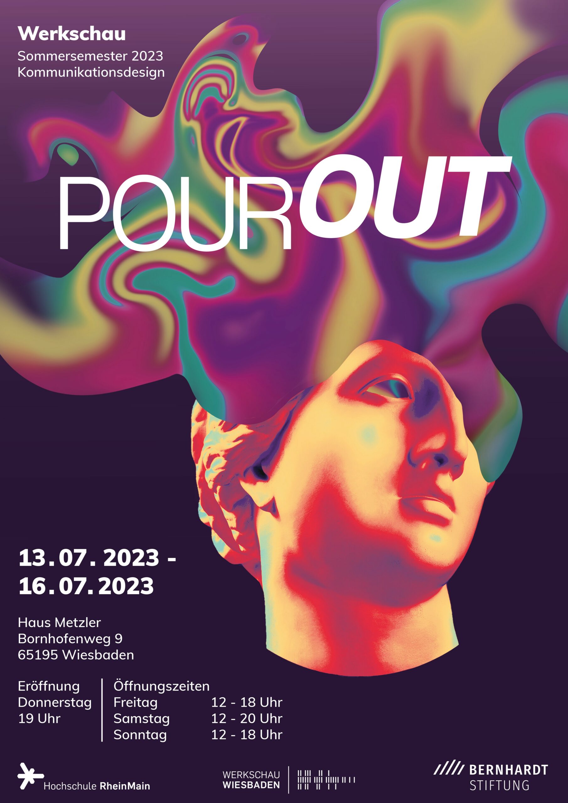 Es ist wieder an der Zeit, neue Ideen fließen zu lassen. Es sind aber nicht nur Ideen, sondern faszinierende Emotionen und kreative Energien, die strömen und mitreißen bei der anstehenden Werkschau der Hochschule RheinMain-Kommunikationsdesigner. POUROUT bringt verschiedenste Werke und Installationen, mit den vielfältigsten Techniken, Stilen und Konzepten in die besondere Leerstand-Location. Die Vernissage findet am 13. Juli ab 19 Uhr im ansonsten leerstehenden Haus Metzler (Foto rechts) im Bornhofenweg 9 auf dem Walkmühle-Areal statt. Geschaut und gestaunt werden kann das ganze Wochenende über. 38 Absolvent:innen aus dem Sommersemester 23 zeigen ihre Abschlussprojekte, die vom gebundenen Buch bis hin zur crossmedialen Rauminstallation reichen. Aus den Bereichen Corporate, Print, Bewegtbild, Interactive und vielem mehr ist alles vertreten und wird im gesamten Haus Metzler präsentiert. Unter der Leitung von Prof. Dr. Theo Steiner und Prof. Börries Müller-Büsching werden die Abschlussarbeiten kuratiert und dokumentiert – und natürlich auch wieder publiziert.