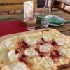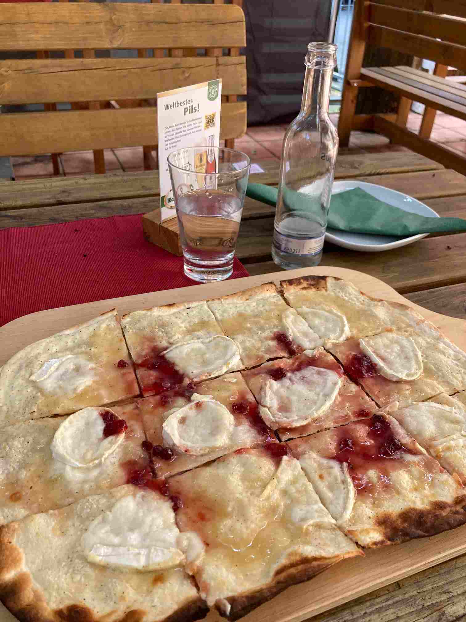 „Best Flammkuchen in town“ steht auf der Tafel vor der Tür, und unser erster Test zeigte, dass diese selbstwusste Behauptung kaum übertrieben ist. Lecker war´s! Ein Dutzend Varianten stehen auf der Karte, Klassiker ebenso wie besondere Kreationen. Besonders ist auch die Option, den Flammkuchen auf Wunsch mit Dinkelteigling zu bestellen. 1 Euro Aufpreis dürfte die Alternative vielen Gästen wert sein.