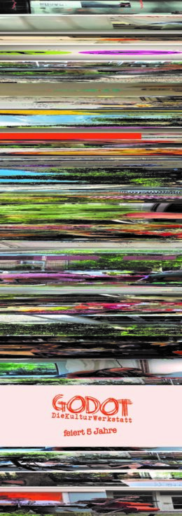 Fünf ereignisreiche Jahre, in denen schon so viel ist passiert: Zahlreiche Ausstellungen, Lesungen, Theateraufführungen, Events und immer schon die nächste Veranstaltung in Planung. Allem voran sind natürlich die im letzten Jahr zum ersten Mal stattgefundenen „Muschelkonzerte“, „Poesie im Park – Eine Art Festival“ – in diesem Jahr wieder vom 11. bis 13. August – und aktuell auch der Kunstsommer (mit dem adhoc/kollektiv) und die von Titus Grab betreute Westendgalerie zu nennen, die von Godot präsentiert und zum größten Teil auch durchgeführt werden.