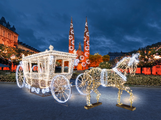 Auf dem Platz sollen der Obelisk und die Bonifatiuskirche, die auf Vermittlung von Marc Bouffier ihren „Segen“ gegeben hat, mit weihnachtlichen Motiven angestrahlt werden. Bäume und Buchsbaumhecken auf dem Platz und entlang des Platzes werden mit Lichtnestern illuminiert. Last but not least wird eine festliche Kutsche mit Gespann auf dem Platz stehen.
