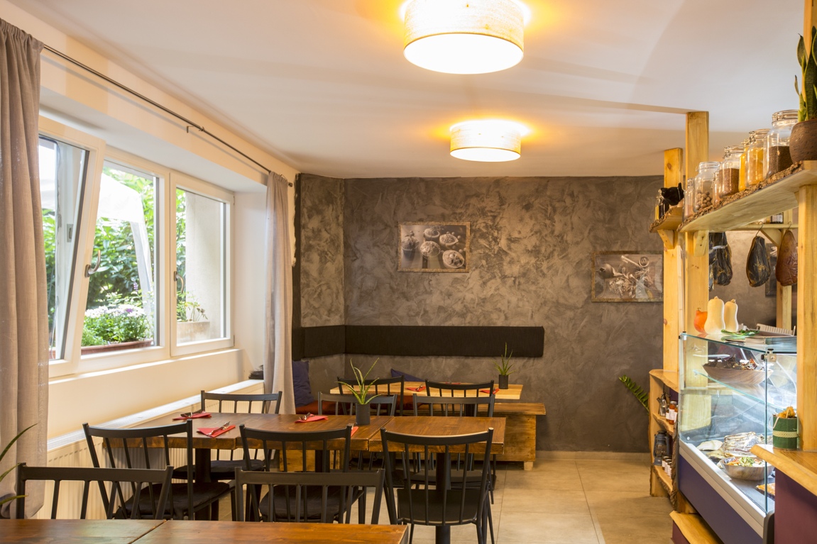 Es ist eine Mischung aus Deli und Restaurant, das die Bovins geschaffen haben, mit viel Charakter, durchaus rustikal, dabei sehr gemütlich. Das Interieur hat Ilja selbst gezimmert, denn er ist grundsätzlich der Typ, „der alles selbst macht“. Zeit zum Verweilen und Zeit zum Genießen sollte man auf jeden Fall mitbringen und sich auf die Gerichte der sich immer wieder verändernden Karte einlassen, Bewusstsein schaffen für die besagte Ursprünglichkeit und dringend benötigte Nachhaltigkeit einer Mahlzeit.