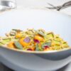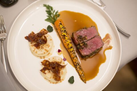 „Bewusst anders“ und in einzelnen Komponenten durchaus „unerwartet“, wie Striebe sagt, sind die Gerichte aber allesamt. So verrät die Speisekarte nur die grundlegenden Zutaten, während Sheini in der Küche dann ein Rundum-Erlebnis auf den Teller bringt. Dabei liegen die Highlights oft im Detail: Dashi Beurre Blanc zum Black Cod, die die Wohlfühlstimmung aus der Vorspeise in den Hauptgang trägt, sowie auf den ersten Blick klassisch abgezogene kirschgroße Tomaten, die im Mund dann geschmacklich explodieren. Oder buttrig-geschmeidige Lammhüfte kombiniert mit zart geschmorter Haxe und dazu eine Yuzu-Creme, für deren zitronige Komplexität erst eine Beschreibung gefunden werden muss.