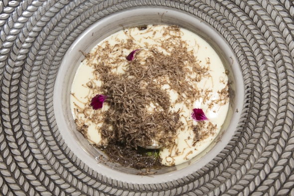 Anders formuliert: Trotz aller Experimentierfreude geht eine gewisse Bodenständigkeit der Gerichte nicht verloren. Vor allem das „Signature Dish“, pochiertes Ei mit Spinatcrème, Kartoffel-Espuma und Trüffel ist auf sehr hohem Level einfach leckeres Wohlfühlessen.