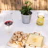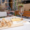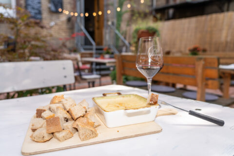 Hausgemachte Flammkuchen, überbackene deftige Ofenseelen, Bretarte (quasi eine Eigenkreation: die Symbiose aus Brezel und Flammkuchen – einfach selbst ausprobieren) und, für die etwas kühleren Monate, Fondue. Felchs Favorit auf der Karte sind die heiße Haus-Seele (mit Tomaten, gekochtem und rohem Schinken, “Spezialgewürz” und Edamer Käse überbacken) sowie der warme Kochkäse. “Alles, was zum Wein passt und schmeckt”, beschreibt er sein Angebot und empfiehlt dazu einen roten Zlatan Plavac aus Kroatien.