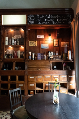 “Den Garten sieht man leider von außen nicht”, sagt Björn Falch fast schon etwas wehmütig über seinen Innenhof, der umrahmt von Altbauten ein ganz besonders gemütlicher Ort in der Unteren Albrechtstraße ist. Falch betreibt dort in der Hausnummer 16 hinter großen Glasfenstern seit gut zwei Jahren das “Old Vineyard” in einer alten Apotheke, in der zuvor französisch gekocht wurde und die, das fällt sofort ins Auge, das optimale Setting für das Konzept rund um Wein und Whisky bietet.
