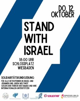 Für ein Zeichen der Solidarität haben sich das Wiesbadener Bündnis für Demokratie, die Deutsch-Israelische Gesellschaft Wiesbaden e.V., die jüdische Gemeinde Wiesbaden, die Gesellschaft für Christlich-Jüdische Zusammenarbeit in Wiesbaden, der Schlachthof und der Verein Spiegelbild zusammengeschlossen. Gemeinsam veranstalten sie am Donnerstag die Kundgebung. Sie möchten gemeinsam mit allen, die zum Schlossplatz kommen werden, Anteilnahme zum Ausdruck bringen und solidarisch sein mit der israelischen Gesellschaft und allen, die hier von diesem Terror betroffen sind.
