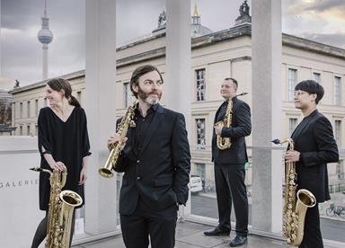 sonic.art – Bilder neu entdeckt im Foyer Großes Haus. Ob Johann Sebastian Bachs »Die Kunst der Fuge«, »Bilder einer Ausstellung« von Modest Mussorgski oder Kompositionen von Philipp Glass – das sonic.art Saxophonquartett eröffnet ungeahnte Hörperspektiven auf Musik verschiedenster Epochen. Als Zuhörer:in kann man kaum glauben, dass das Saxophon zu Lebzeiten Bachs noch nicht erfunden war – so selbstverständlich klingen selbst seine für vier Saxophone arrangierten Stücke, die das Quartett zur Aufführung bringt. Um 11 Uhr.