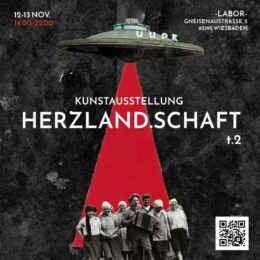 Ausstellung „Herzlandschaft“ im Labor Westend, Gneisenaustraße 2. Werke von neun russischen und belarussischen Künstler:innen werden gezeigt. „Wir laden jeden ein, die Schätze der Untergrundkunst Russlands und Weißrusslands zu sehen. Sie werden das blutende Herz des Kernlandes mit den Augen der rebellischen Kernlandbewohner sehen. Sie werden die skurrilsten Geschichten hinter dem Eisernen Vorhang in der Gemütlichkeit des deutschen Südens hören.“, so Veranstalter Derbenev. Am Samstag und Sonntag von 14 – 22. Uhr.