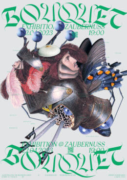 Bouquet Vernissage im Blumenladen Zaubernuss. Surreale Collagen, Blumen und Musik! Die Arbeiten im „Bouquet“ spinnen kleine Traumhafte Fragmente einer utopischen Welt zwischen Traum und Rausch. Monumentale Chimären schweben im Raum, bewohnt von kleinen humoristischen Referenzen zu aktueller und vergangener Popkultur. Sind die fliegenden Züge wirklich real, oder doch nur eine Fantasie? Berauschende Bouquets und Drinks aus dem Weingut Leitz gibt es um 19:30.
