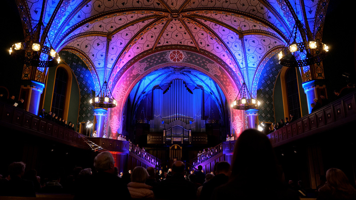 Bachchor Wiesbaden: Evensong in der Lutherkirche. Der Evensong stammt ursprünglich aus der anglikanischen Kirche und ist eine besondere Form des Abendgottesdiensts. Er wird in England im Chorgestühl der großen Kathedralen gefeiert; die Gemeinde sitzt um den Chor herum und ist sozusagen „mittendrin“. Die vordere Chorempore der Lutherkirche, die sogenannte „Sängerbühne“, ermöglicht einen ganz ähnlichen Rahmen. Lesungen und Musik entführen für eine knappe Stunde aus der Welt und dem tagesaktuellen Geschehen. Sie laden dazu ein, zur Ruhe zu kommen und sich neu auszurichten, oder einfach der Musik von Chor und Orgel zu lauschen und dabei den Blick durch die Jugendstilarchitektur der Lutherkirche schweifen zu lassen. Um 18 Uhr.