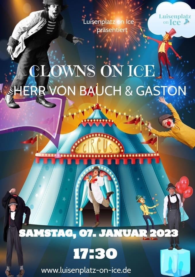 Abschlussshow: „Clowns on Ice – Herr Bauch & Gaston“ bei Luisenplatz on Ice. Zur Abschluss-Show am kommenden präsentiert Veranstalter Sporthilfe Wiesbaden e.V. noch ein besonderes Schmankerl: Clowns on Ice – Herr Bauch & Gaston treten auf und werden die Kinderherzen höher schlagen lassen. Der Eintritt ist frei. Um 17.30 Uhr.
