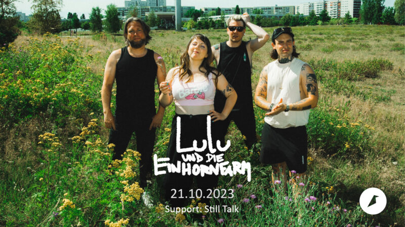 Lulu & die Einhornfarm in der Kreativfabrik. 7 Jahre nach dem Album „Ihr seid alle scheisse“ hat sich an der Grundhaltung nicht viel geändert. Luise F*ckfaces ewiges Sideprojekt Lulu & die Einhornfarm hat es nach zwei Alben mit The toten Crackhuren im Kofferraum endlich wieder eigenständig in die UFO-Soundstudios geschafft und in zwei Sessions nach minimalster Vorbereitungszeit eine EP eingeträllert. Nun kommt sie für ein Konzert in die Kreativfabrik nach Wiesbaden. Um 20 Uhr.