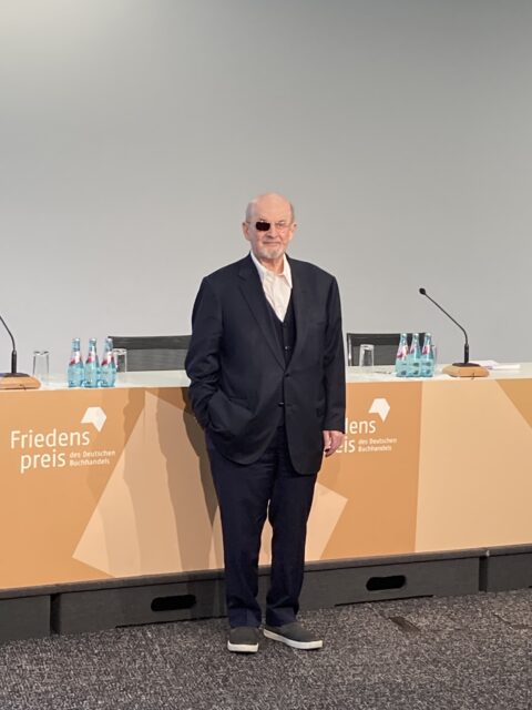 Frankfurter Buchmesse. Friedenspreisträger Salman Rushdie ist schon da und hat sich heute früh gut bewacht und bestens gelaunt den Fragen der internationalen Medien gestellt. Nach Fachbesuchertagen öffnet die Buchmesse heute ab 14 Uhr sowie am Samstag und Sonntag auch für das allgemeine Publikum. Ein Fest der Bücher – seit 75 Jahren und aktueller und notwendiger denn je. „Ich freue mich auf die Kirche am Sonntag. So etwas habe ich noch nie gesagt“, sagte Salman Rushdie heute zum Abschluss des Pressegesprächs. Er meinte natürlich die Frankfurter Paulskirche, wo er am Sonntag den Friedenspreis des deutschen Buchhandels verliehen bekommt. Man darf gespannt sein auf seine Rede.